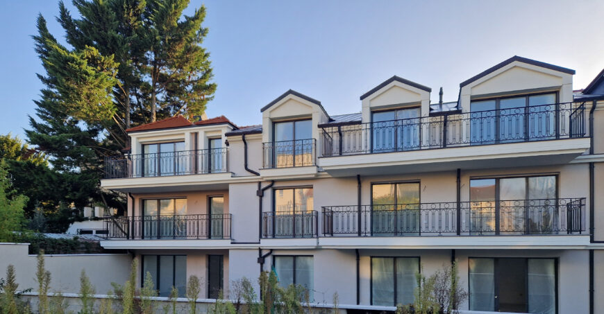Le projet de 12 logements collectifs s’inscrit dans une zone mêlant pavillons et petits collectifs. La topographie du terrain a été un facteur déterminant dans l’implantation du projet ainsi que les 2 marronniers sur rue, créant une séquence d’entrée depuis la rue jusqu’à l’entrée de l’immeuble d’habitation.