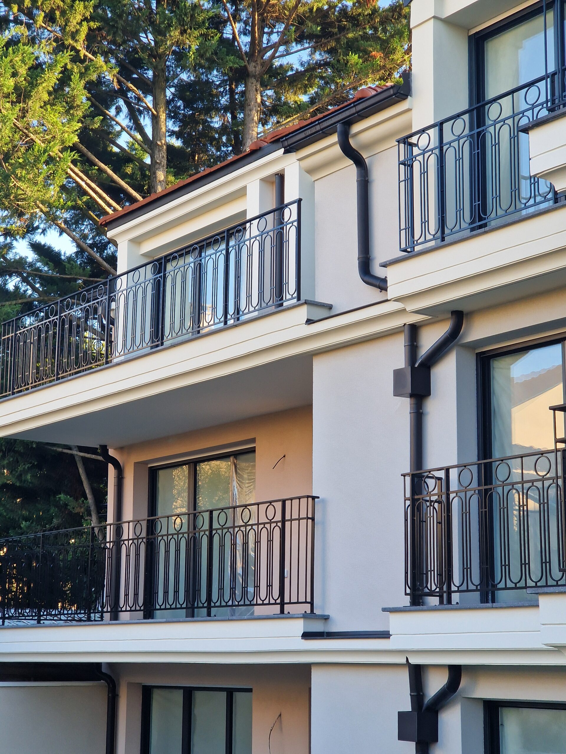 Les éléments rapportés tel que les garde-corps et les modénatures unifient le projet, en effet ce sont les mêmes éléments sur l’ensemble des façades.